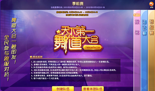 炫舞系列史上最大规模赛事,全民自由参与,根据实力智能匹配,技术决定王者!