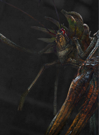 目前已知体型最大的甲壳种其背上背负着老山龙的头骨,因此而被猎人们昵称为“老山蟹”