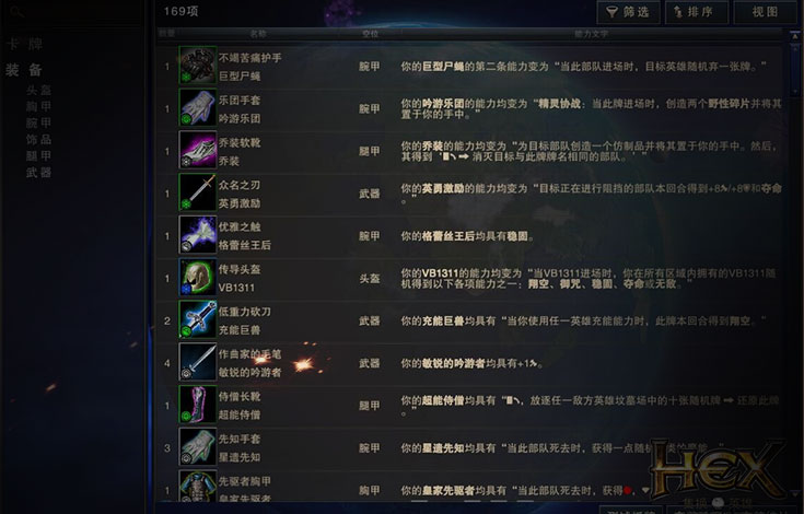 《HEX》是完美世界运营的由美国Cryptozoic Entertainment公司研发的首款古典在线集换式卡牌游戏。实现卡牌配搭零限制,即完全不受任何套牌、种族、英雄的桎梏,内置了构筑、轮抓、现开三大类比赛形式,除了随机匹配赛,玩家也能随时创建自定义的比赛房间。