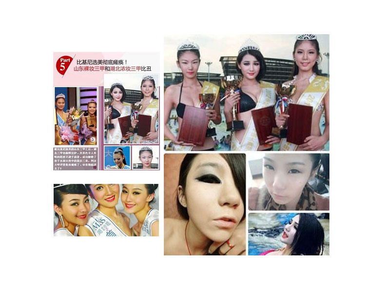 选美大赛一直是网友乐于关注的,但是2013年韩国小姐选美大赛照片的爆出却让网友笑开了花,众多美女长相相似,难以分辨,被吐槽别冲着同一个整容医生去啊,好似同一条整容流水线上的作品,这比的是刀工,看来是团购的。