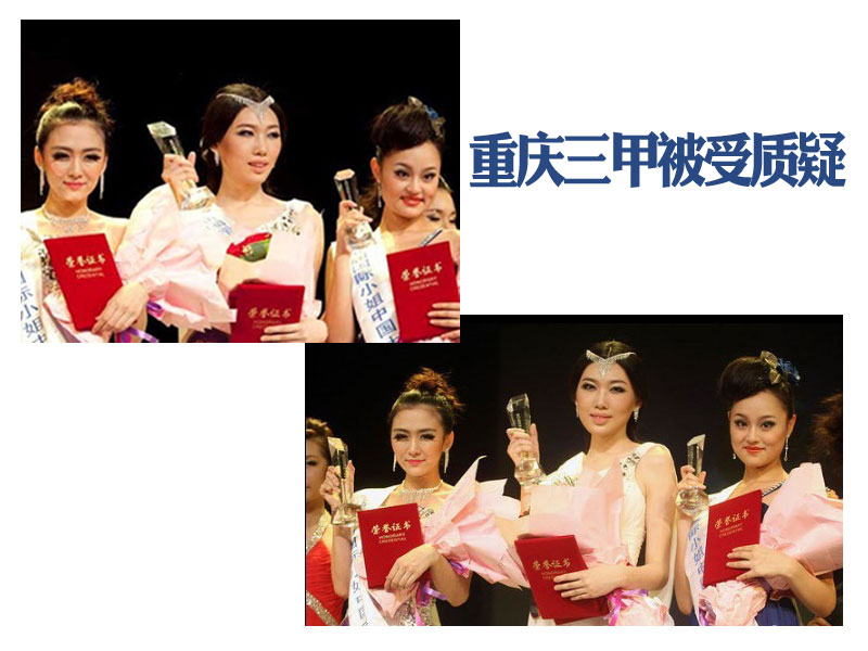 第52届国际小姐重庆赛区三位佳丽照片一出,引发了热议。有网友形容三人惨不忍睹,凤姐一来,谁与争锋。也有网友觉得个人的审美不同,不必较真!也有网友觉得自己的自信心达到了前所未有的爆棚。