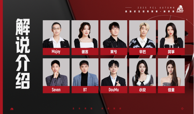 本次PCL2025秋季赛是新旧力量碰撞非常猛烈的一次,比赛不容错过。为了给大家带来更好的赛事观看体验,本次PCL秋季赛的解说阵容同样空前强大!