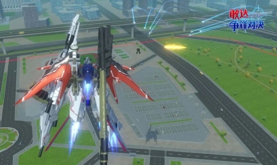 【普通射击】按下射击键。发射磁轨炮以及导弹射击并击飞目标。