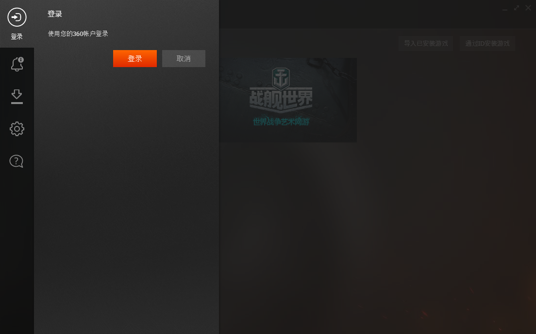 1.进入360 Wargaming Game Center客户端,点击左上角的“登录”按钮。