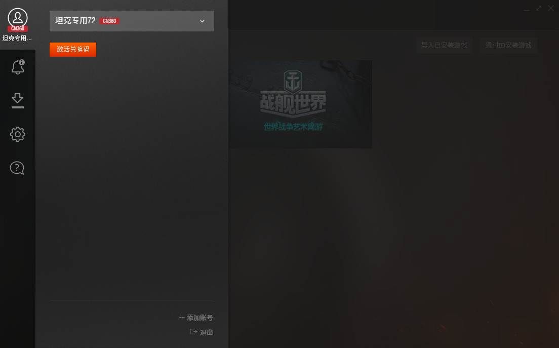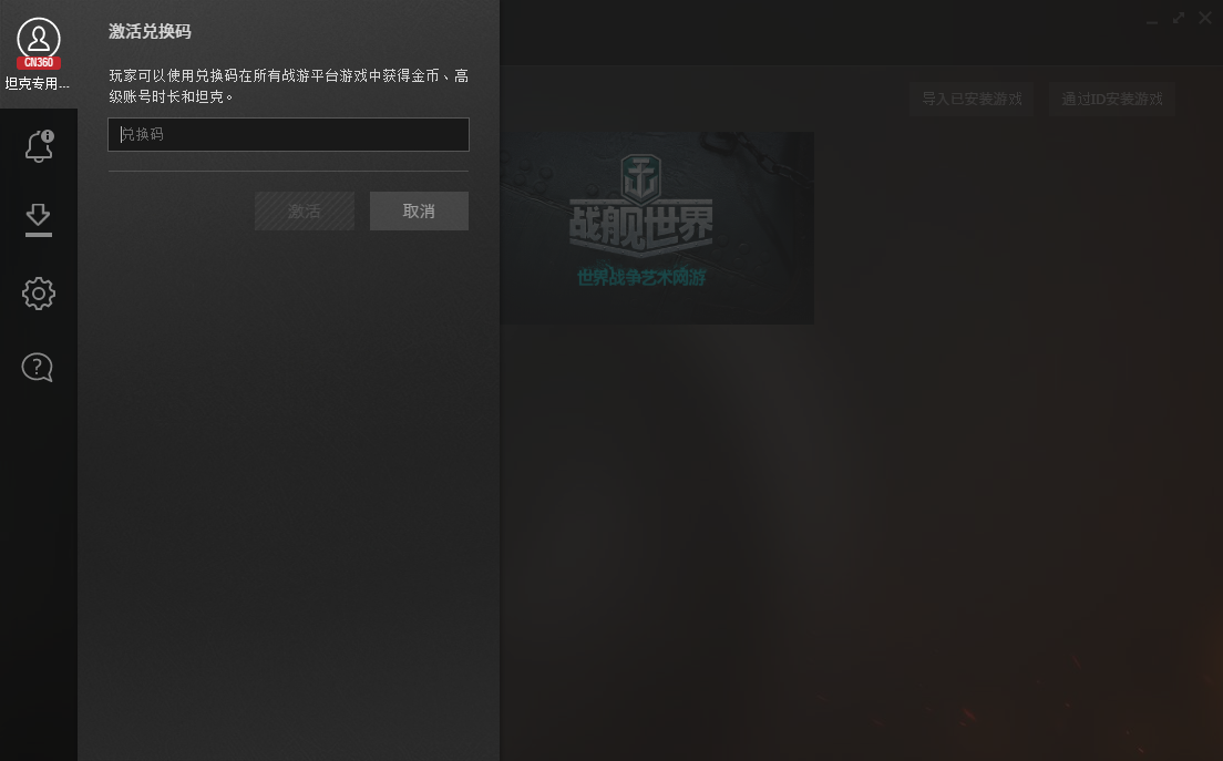 6.在360WGC客户端内,再次点击左上角头像栏,并点击“激活兑换码”。