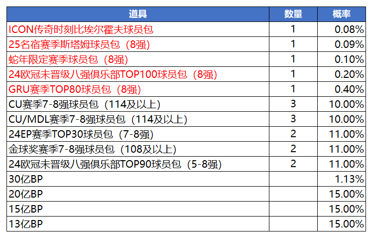 消耗600至臻绿茵秘钥,必得ICON强化重试券(用于7/8强)。