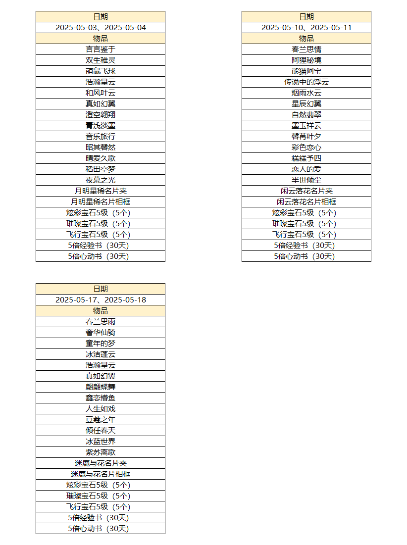 2025年5月期间的周末拍卖行将开启无限拍卖,每周末晚上20:30-20:55前往商城→拍卖行即可参与,使用点券竞拍。