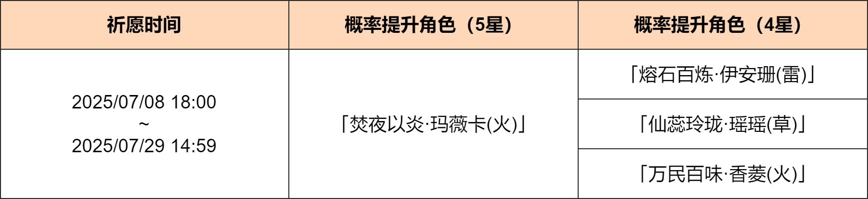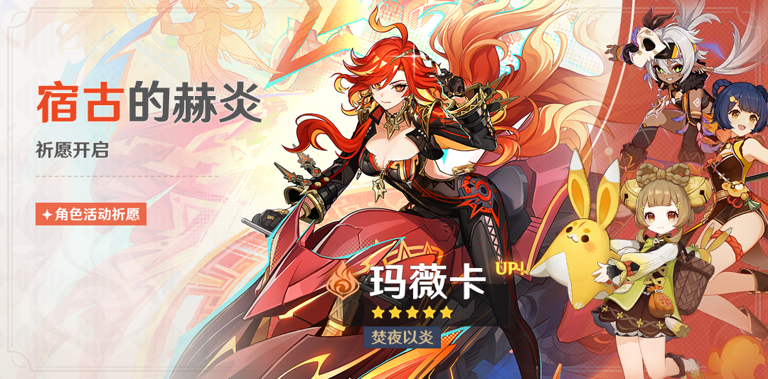 ●活动期间,限定5星角色「焚夜以炎·玛薇卡(火)」的祈愿获取概率将大幅提升!