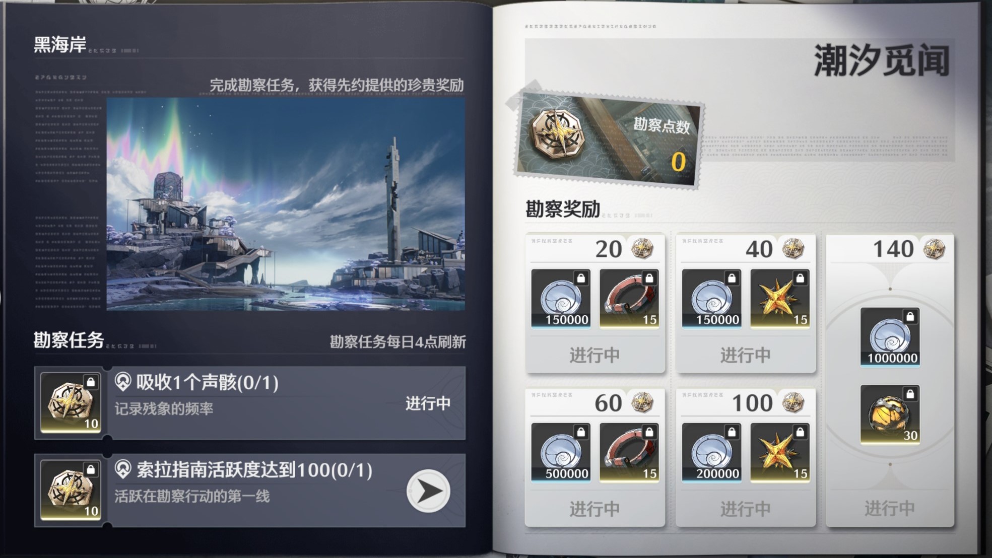 ✦活动简介:每日完成勘察任务,可获得【勘察点数】,达到【勘察点数】要求即可领取对应奖励。
