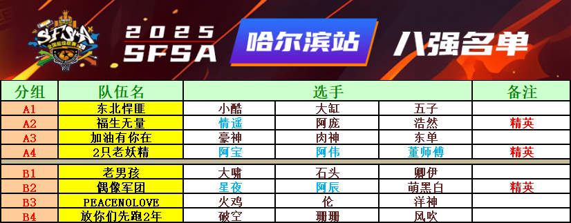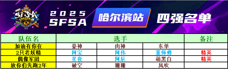 超能主场,2025 《街头篮球》SFSA全国超级联赛哈尔滨站今日继续火力全开!作为今年的倒数第二站,哈尔滨赛区吸引了一众精英选手和二区的线上强者,争夺为数不多的总决赛名额。北方豪强群起,5支本土队伍和3支精英队伍同台竞技。历经两天的激烈角逐,最终由星夜、阿辰、萌黑白杀出重围,在北方哈尔滨赛区登顶称王,让我们一起了解下他们的夺冠之路!