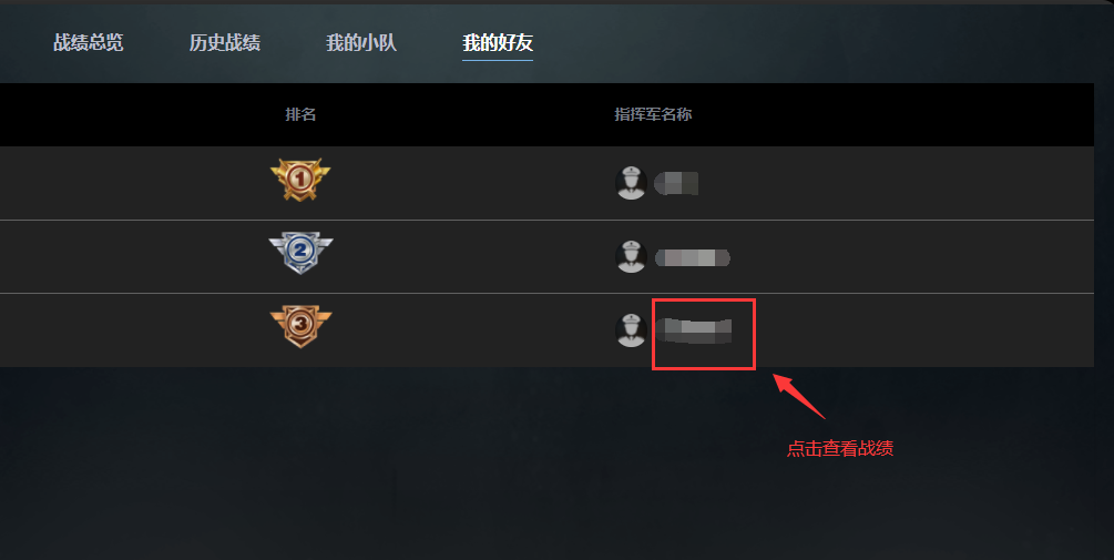 在我的好友界面,指挥官可便捷地查看好友的战绩。只需进入界面后,点击好友的昵称,即可实现查询。需特别留意的是,指挥官必须在游戏中先将对方添加为好友,才能在此界面中查看其战绩。