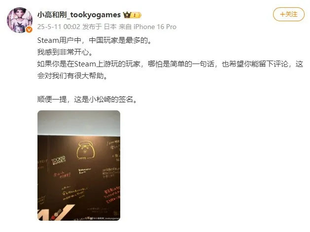 他在发文中表达了对中国玩家的感谢,并鼓励大家积极在Steam上留下评论。他表示:“如果你是在Steam上游玩的玩家,哪怕是简单的一句话,也希望你能留下评论,这会对我们有很大帮助。”这种互动不仅能为开发团队提供宝贵的反馈,还能帮助他们进一步优化游戏体验。