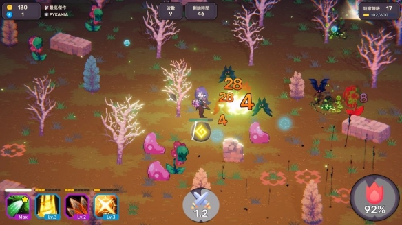 《节奏魔女 舞动的骷髅》不仅保留了传统幸存者题材的基础元素,还融入了音乐游戏的特征。每个关卡都有节奏感强烈的背景音乐,玩家需根据节拍按键发起攻击,敌人也随之移动,使游戏画面充满欢乐。准确击打节拍可累积连击倍率,提升攻击频率。积累狂热值到一定程度时,进入狂热模式,增加攻击速度,带来超快感的打击体验。