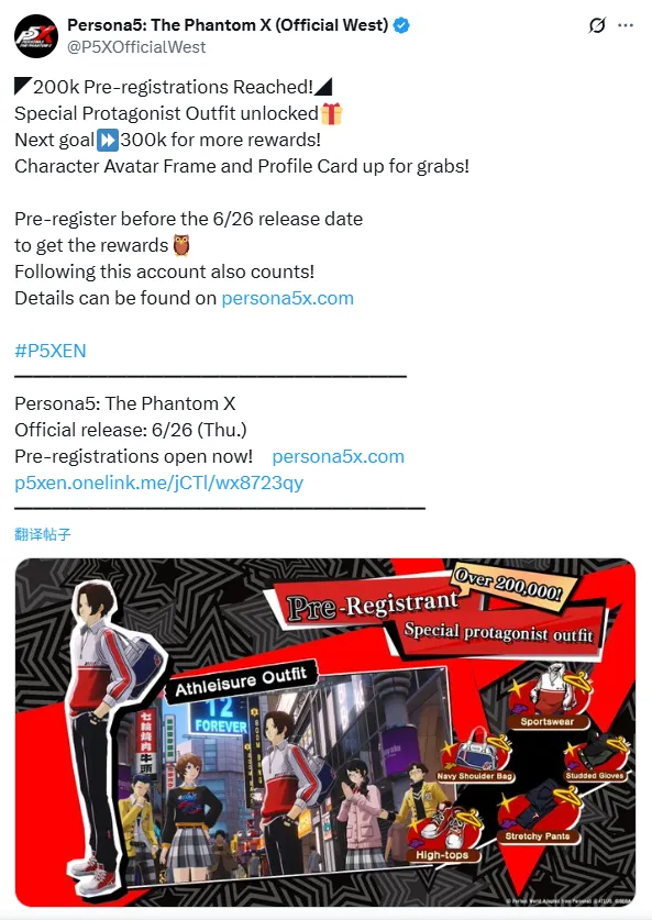 近日,世嘉与ATLUS联合宣布,《女神异闻录:夜幕魅影》全球预注册量已突破20万大关。为庆祝这一里程碑,所有在6月26日前完成预注册的玩家将免费获得主角专属"运动休闲套装",并额外获赠10次契约抽卡和5次武器抽卡机会。目前,游戏已在Google Play、App Store及官网开放预注册,并将于6月26日登陆欧美及日本市场的安卓/iOS/PC平台,支持日文配音及英日双语文本。该游戏已在中国大陆、台湾及韩国地区上线,主机版本也在积极筹备中。