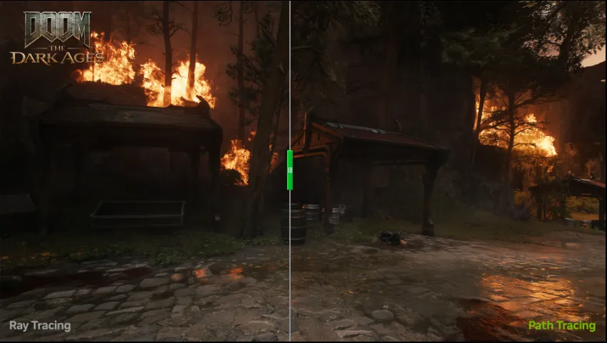 近日,id Software的《毁灭战士:黑暗时代》因其采用光线追踪全局光照而呈现出惊人的视觉效果,赢得了玩家们的一致好评。PC玩家们即将迎来更为极致的画面表现。英伟达宣布,将于6月为GeForce RTX显卡用户开放路径追踪和DLSS光线重建功能。