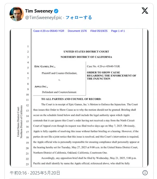 随后,Epic Games的CEO Tim Sweeney向法院提起了针对苹果公司“不公正待遇”的动议,并获得支持。法院勒令苹果公司尽快解决这一问题。