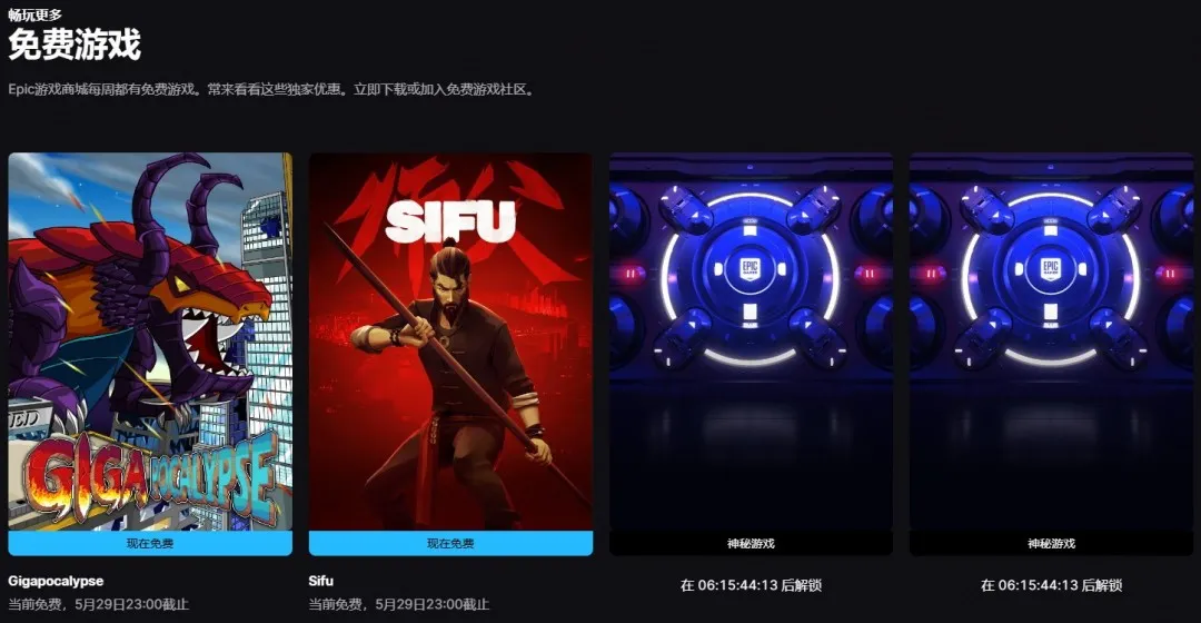 Epic游戏商城本周限时免费送出两款精彩游戏:《巨兽浩劫》和《师父》。玩家可以在5月29日23:00之前登录Epic商店领取这两款游戏,并永久保存到自己的游戏库中。下周,Epic将继续送出两款神秘游戏,值得期待。
