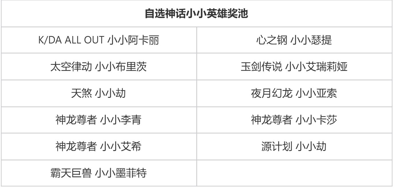 ●本期命运之轮召唤神话小小英雄奖池包含: