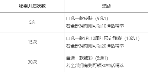 以下LPL十周年限定臻彩累计开启15次后可自选一款免费领取
