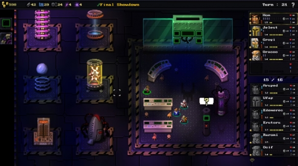 游戏采用复古 8bit 风格画面,同时保留了 CRPG 应有的细节。技能与地形之间存在连锁效果,例如对油桶施放火焰魔法可将周围区域化为火海。玩家需要深思熟虑,善用环境脱离险境。