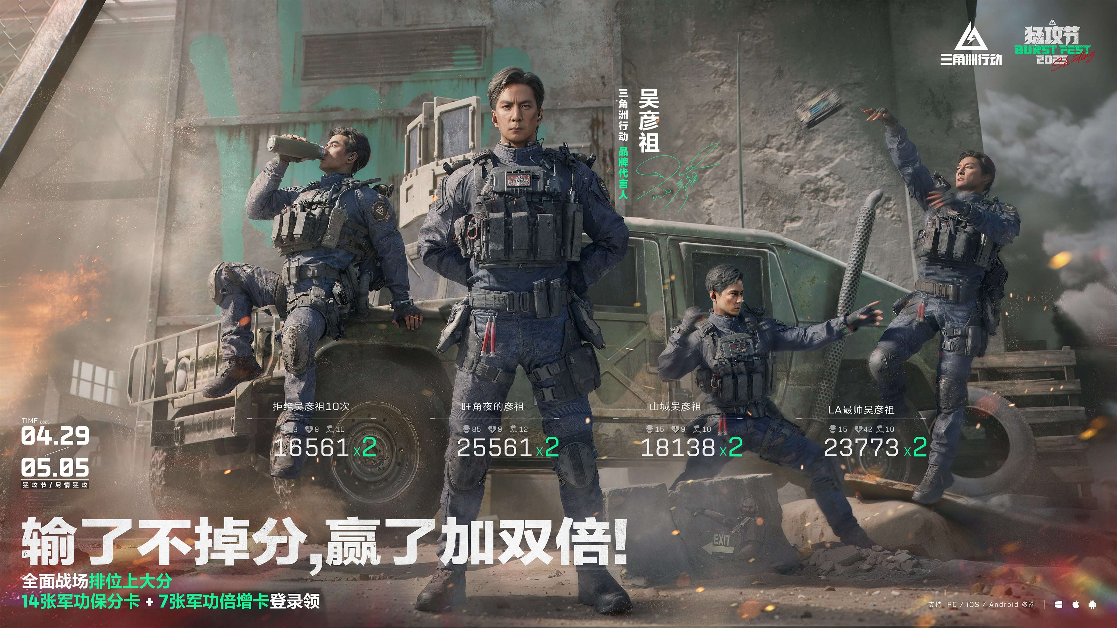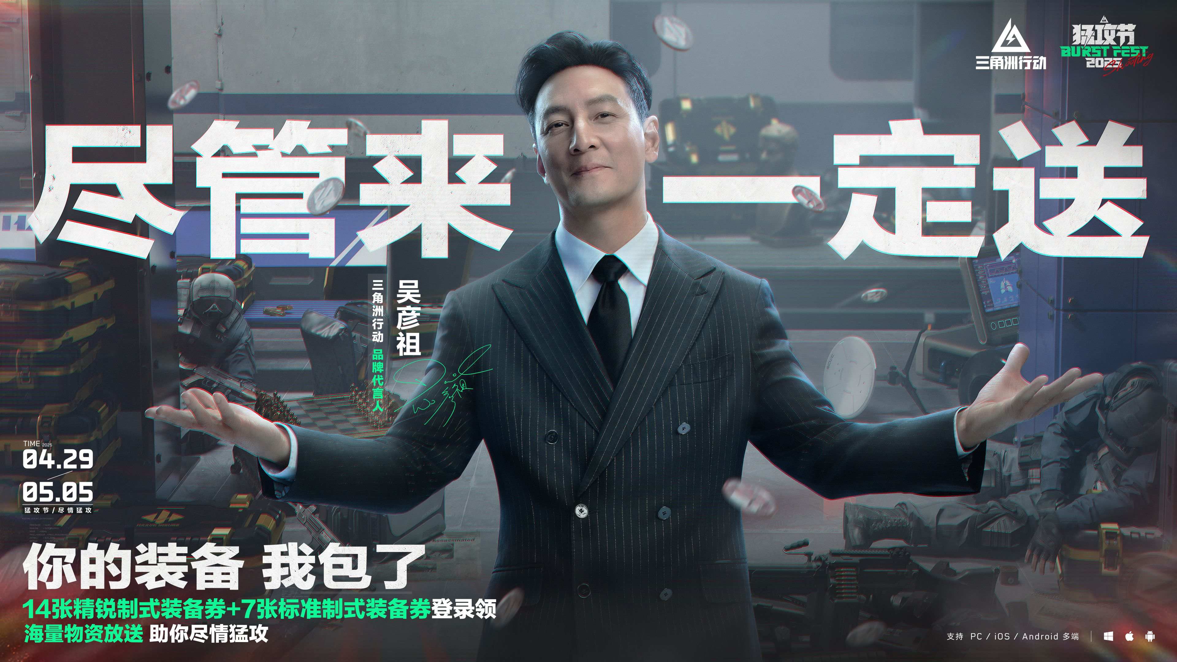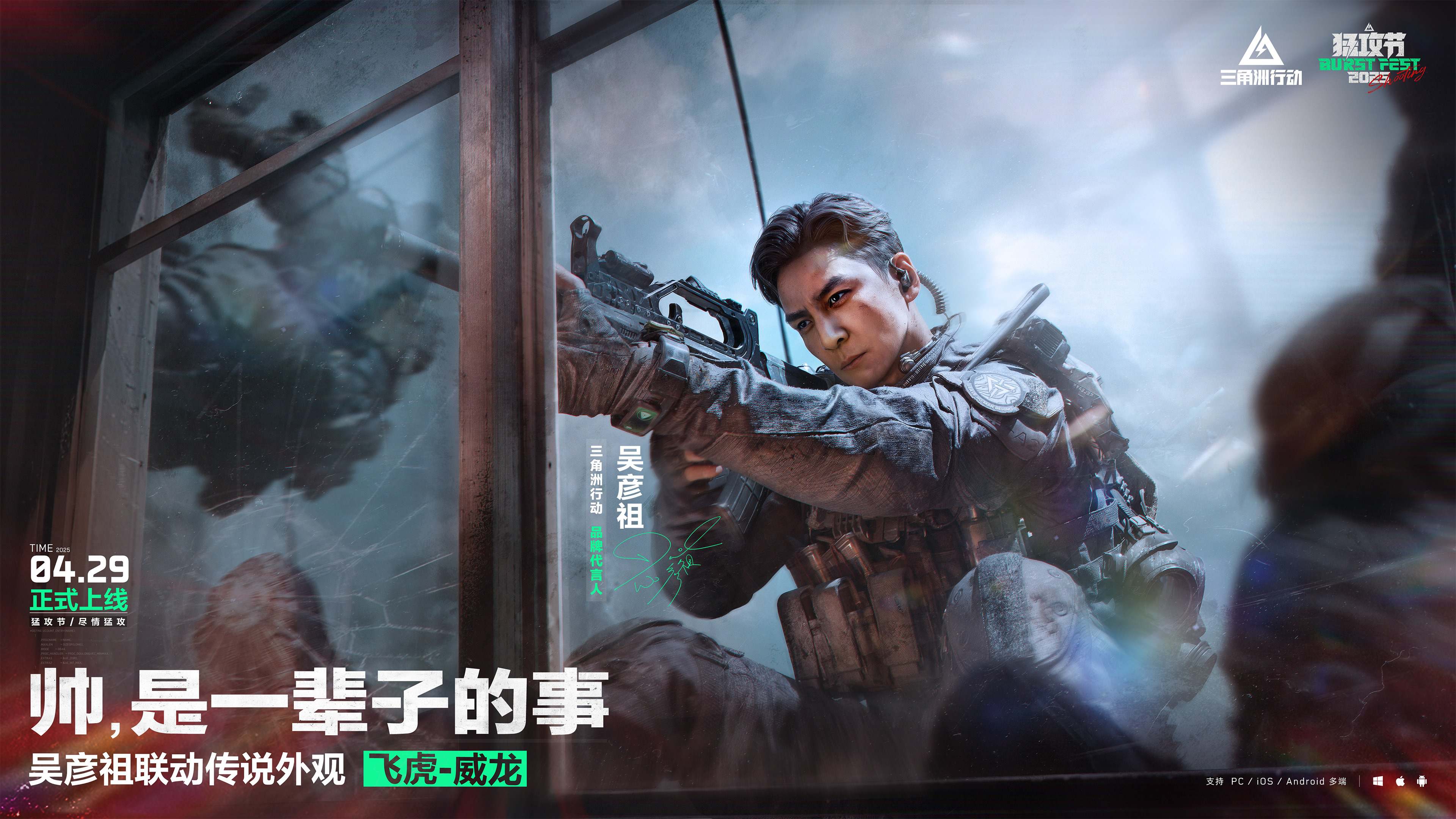 吴彦祖本祖亲临战场,担任猛攻节指挥官,召集各位彦祖一起猛攻!本次猛攻节将上架吴彦祖联动传说外观【飞虎-威龙】,该外观采用彦祖真人高精度面部扫描技术,让各位干员在游戏中做彦祖,打得爽,玩的帅。本次联动还包含【飞虎-G18】、飞虎系列军牌、名片、头像,且枪身含有吴彦祖专属签名。在端内完成活跃任务更可解锁联动红色物品【吴彦祖之镜】!