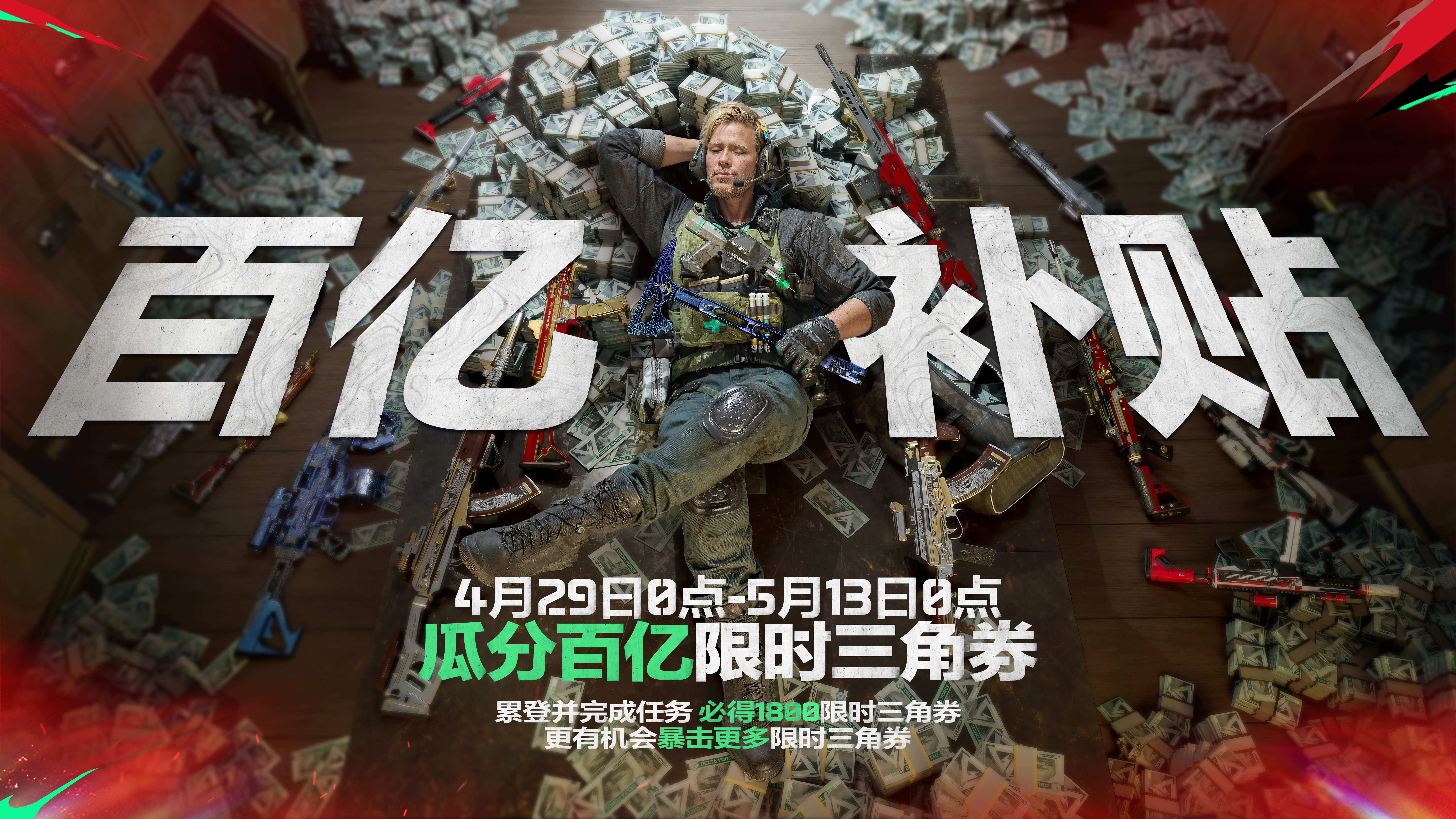 4月29日0点-5月13日0点,瓜分百亿限时三角券活动开启!完成累计登录及简单任务,必得1800限时三角券!累计登录还能领取可暴击的限时三角券礼包,有概率开出多倍奖励!限时三角券、三角券补给包使用时限:4月29日0点-5月30日01点00分00秒