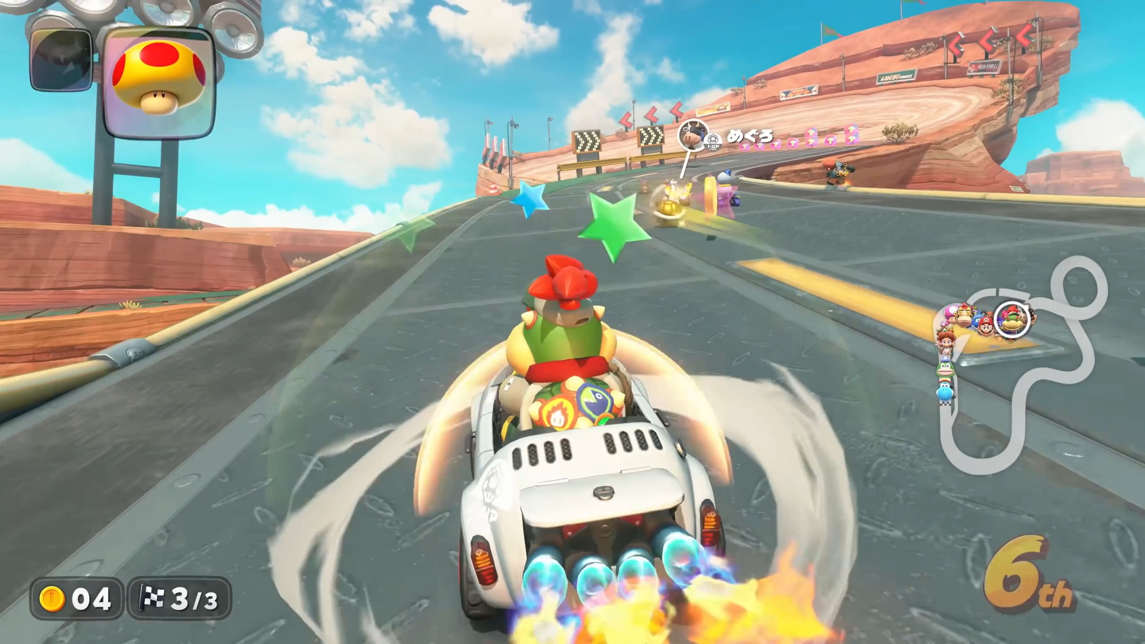 在《马里奥赛车(Mario Kart World)》中,保持领先其实是一件危险的事情。