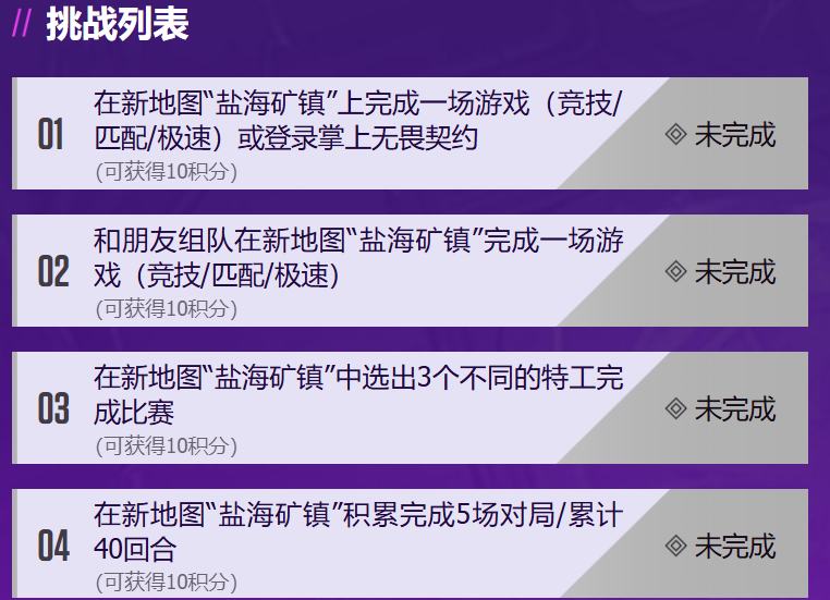 2. 完成共计6个游戏挑战任务,完成一个挑战获得10积分(幸运玩家获得15积分)