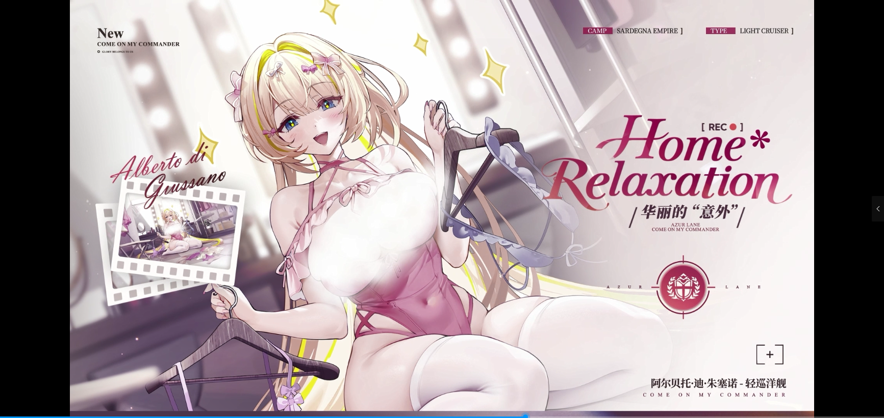 阿尔贝托·迪·朱塞诺的换装「华丽的“意外”」发生在一片混乱的化妆间内,此处正散落着少女不小心打翻的私藏衣物。等待指挥官走近后却发现,这场“意外”好似少女有意为之,她正借此机会介绍自己为了与指挥官相处的各种场合下,最适合自己的衣物款式。
